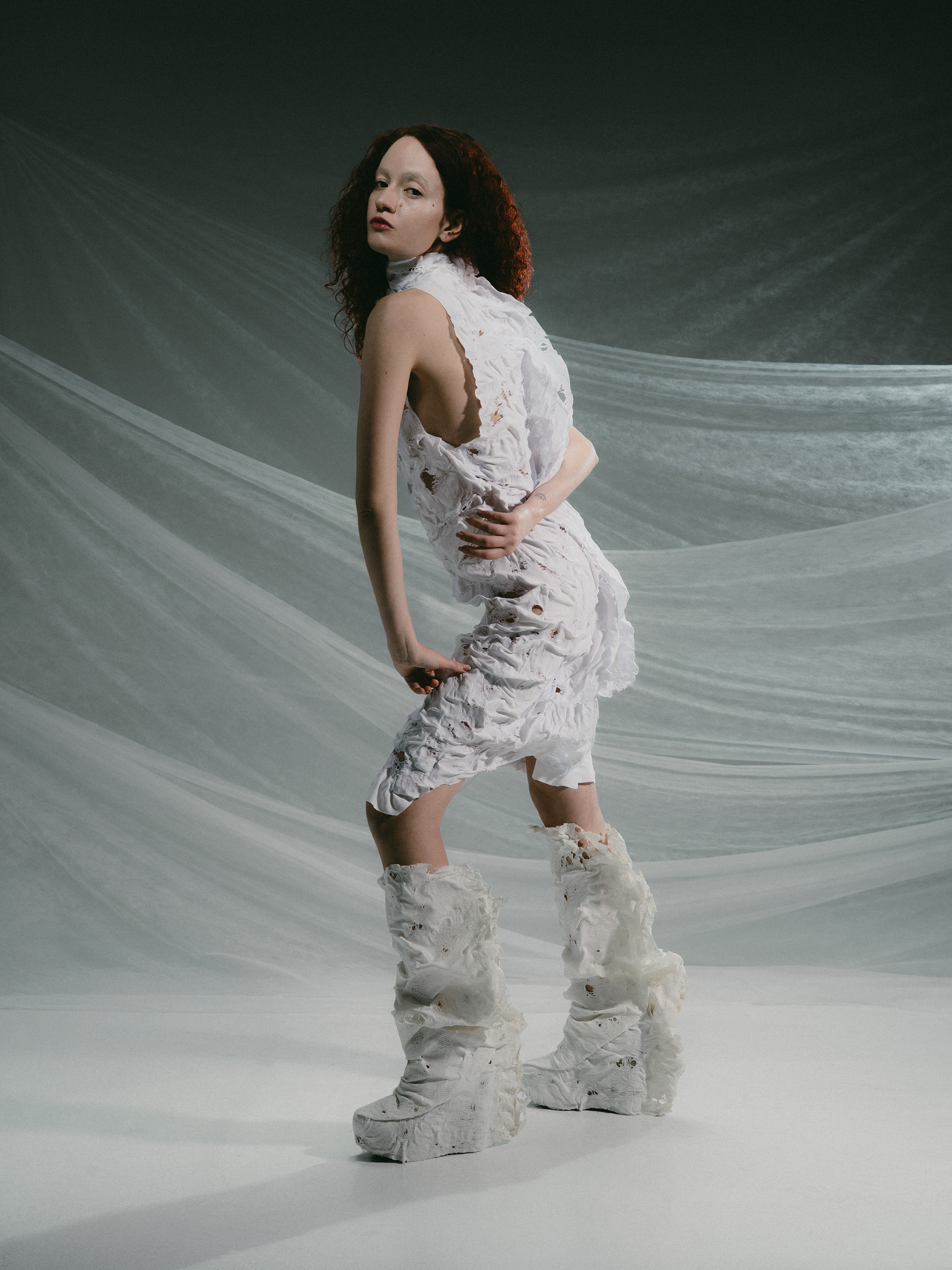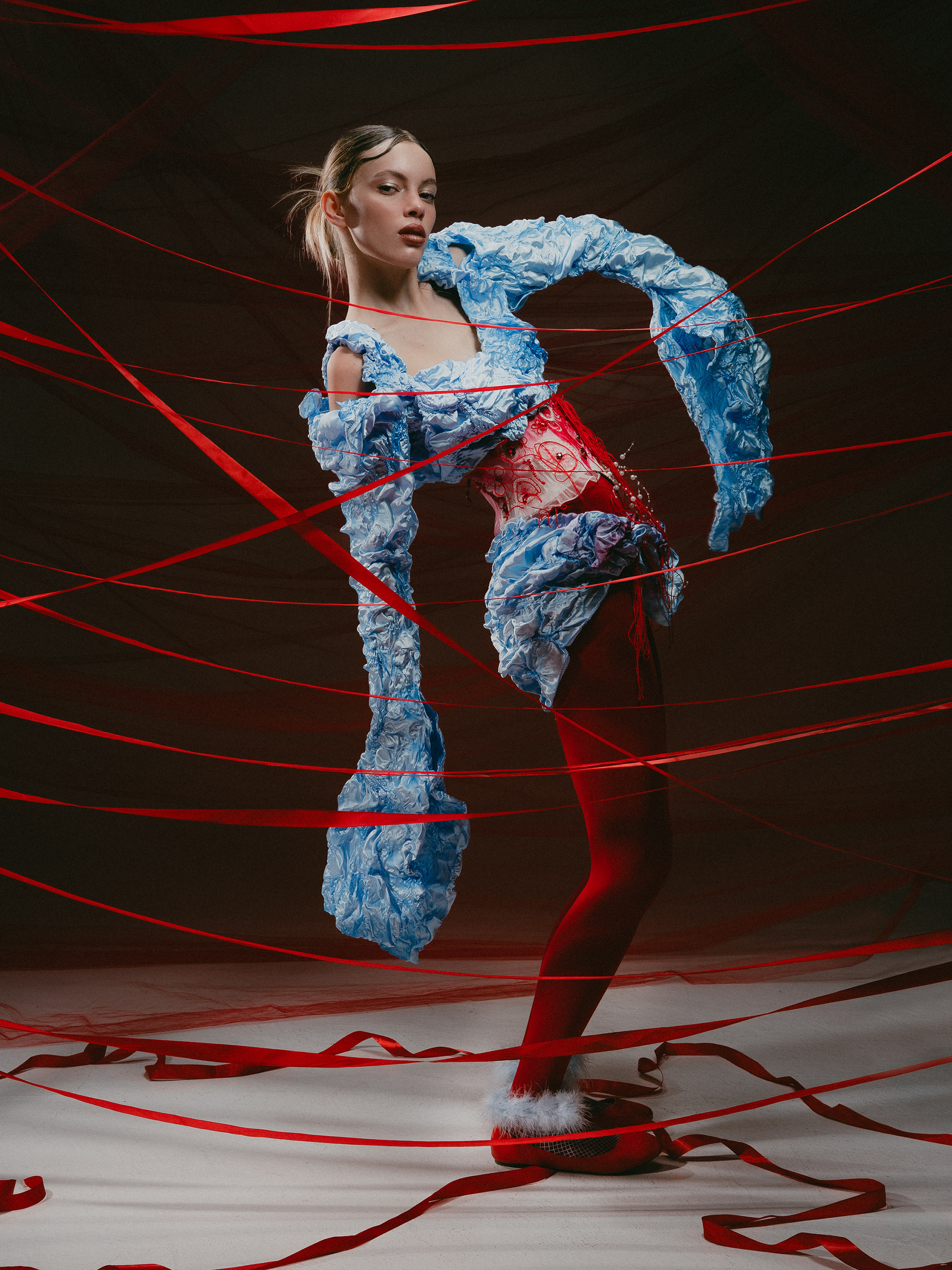 This collective project in collaboration with fashion designer Maria Alexandri, explores female strength through the very symbols historically used to contain it. Fabric, tension, and bodily resistance become tools of transformation, where constraint meets power and the body negotiates control. Positioned between conceptual art and contemporary fashion, the work redefines femininity as complex, self-aware, and resilient.